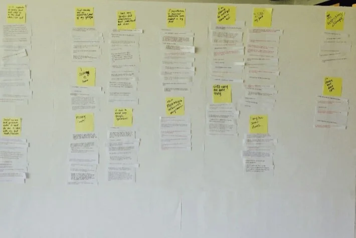 I worked with the clients to create an affinity map of customer quotes and sentiment in order to pull out themes from the initial research.