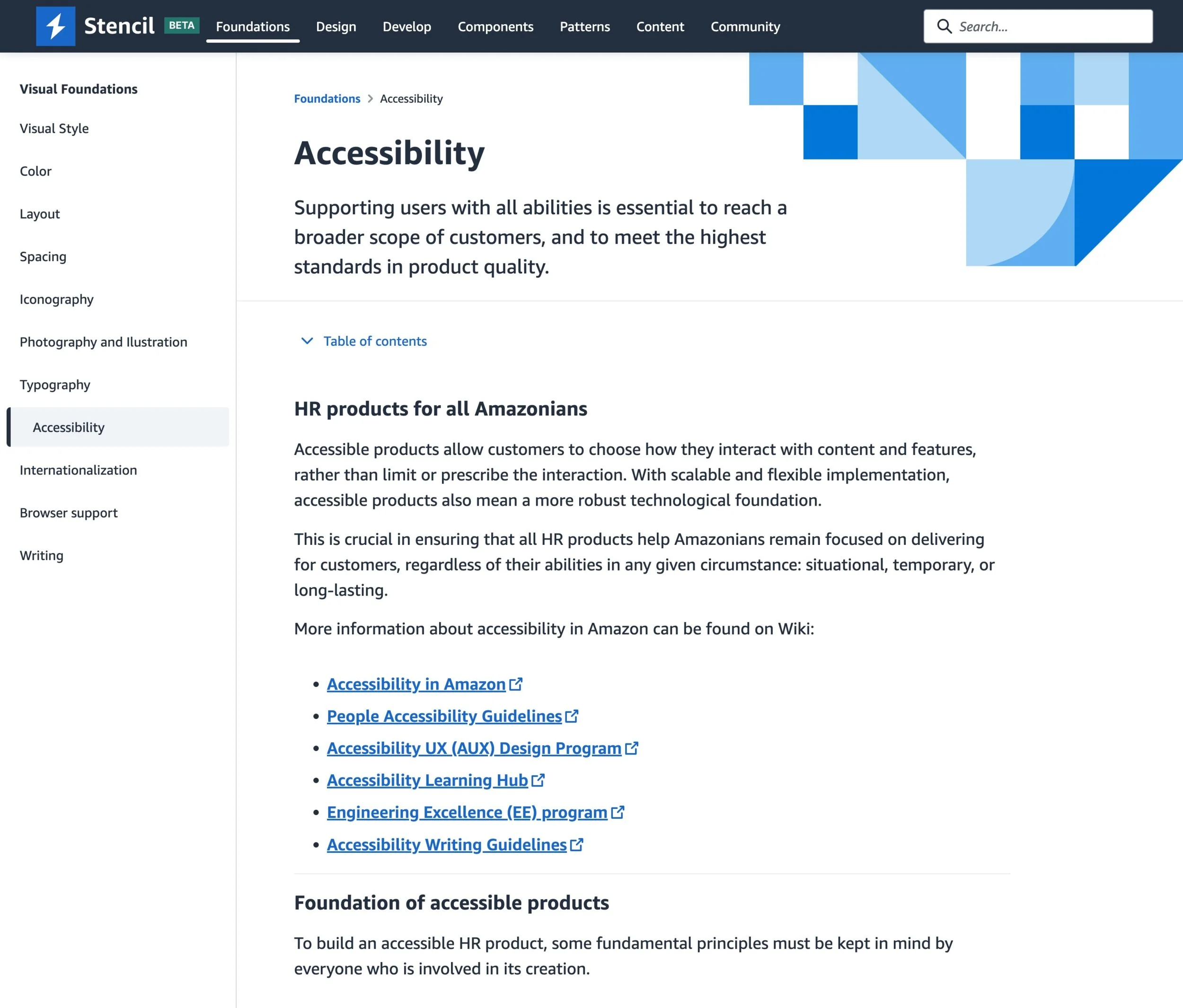 Not only did we need our partners to understand accessibility, we needed our product, engineering, partners to understand and embrace that accessibility was their responsibility. Eventually, the Stencil documentation site became a valuable resource for learning about accessible design and development.
